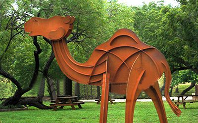 剪影雕塑,看的就是個輪廓!把你想做的東西(人、動物、樹啊啥的),簡化成影子形狀。材料選擇多:不銹鋼、耐候鋼(喜歡生銹那種質(zhì)感)、玻璃鋼、鍍鋅板、鐵板都成。最后還得靠噴漆,給它們打扮上顏色。